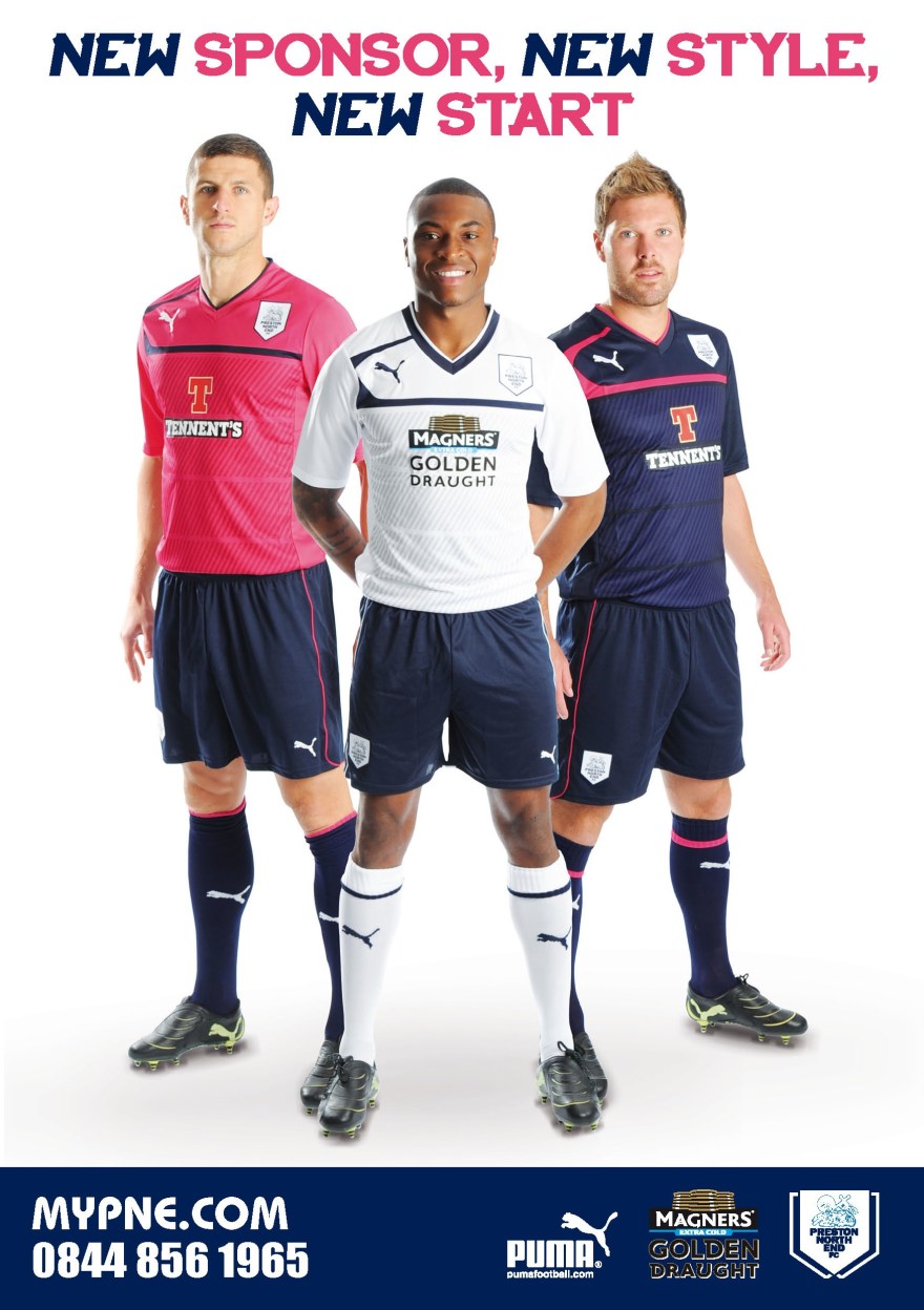 This leaflet was to promote the three new kits for the 2012/13 season. The home, away and charity kits were all showcased by current players in the pre season photo shoot The players were all photographed separately and it was my brief to create a leaflet with all three kits on and using the reverse to advertise sizes and prices.