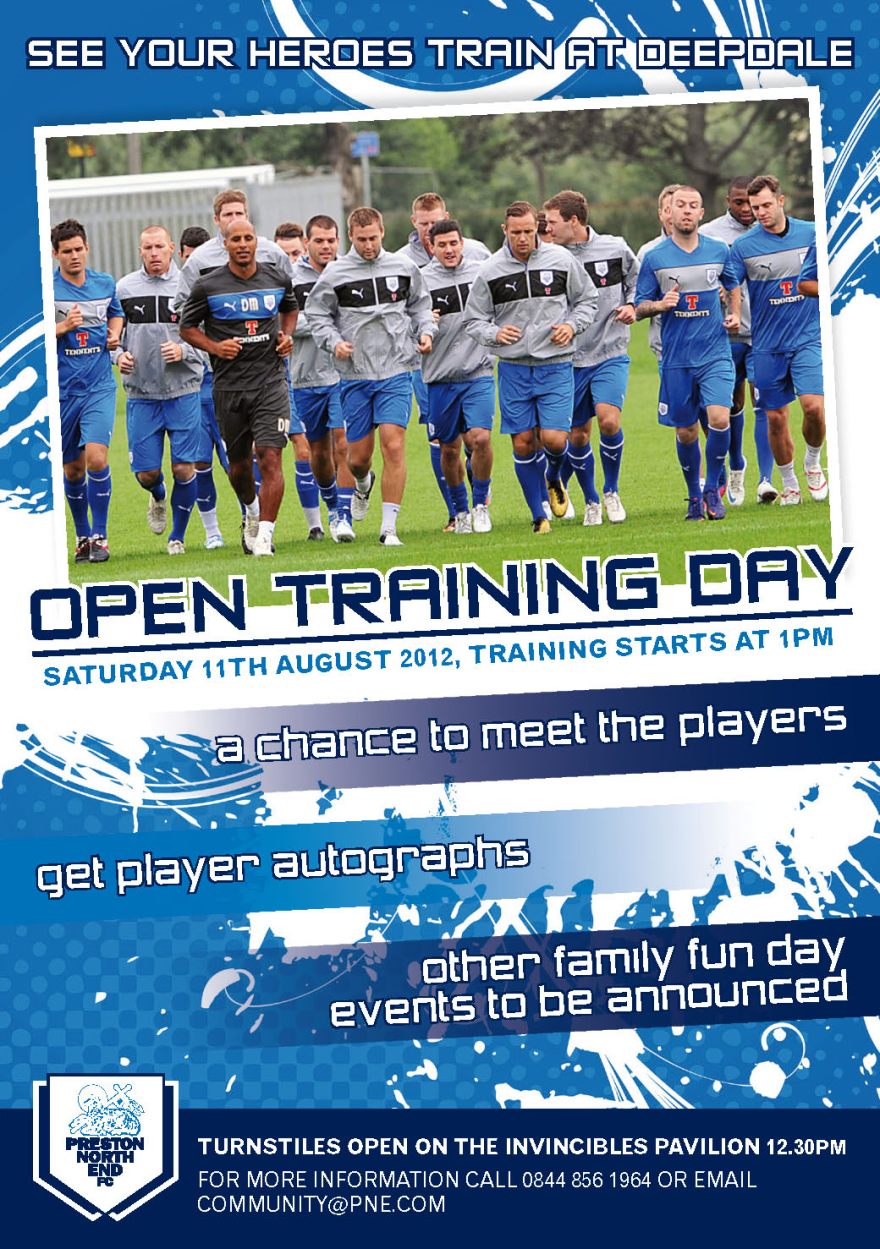 Every pre-season, the manager holds a training session at Deepdale that fans can watch. The Club makes this a family day out and this poster is to appeal to those families by showing them what’s on offer, as well as a chance to meet the players.